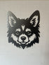 Deze Pomsky wanddecoratie is een prachtige metalen decoratie voor in de tuin. De pomsky is uitgerust met twee gaatjes. Hierdoor kan deze makkelijk opgehangen worden. Hij is gemaakt van Cortenstaal.